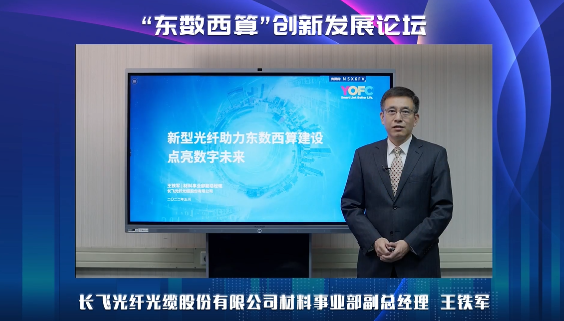发表时间:2022-08-23 14:27 算力已经成为推动经济社会数字化发展的重要驱动力,也正成为全球竞争的新焦点。日前,国家发展改革委、中央网信办、工业和信息化部、国家能源局联合印发通知,同意在京津冀、长三角、粤港澳大湾区、成渝、内蒙古、贵州、甘肃、宁夏等8地启动建设国家算力枢纽节点,并规划了10个国家数据中心集群。至此,我国一体化大数据中心体系完成总体布局设计,“东数西算”工程正式全面启动。 “东数西算”工程的实施对国家和企业而言都具有深远意义。在5月18日举办的2022年世界电信和信息社会日大会 “‘东数西算’创新发展论坛”上,长飞公司材料事业部副总经理王铁军发表了题为《新型光纤助力“东数西算”建设 点亮数字未来》的演讲。