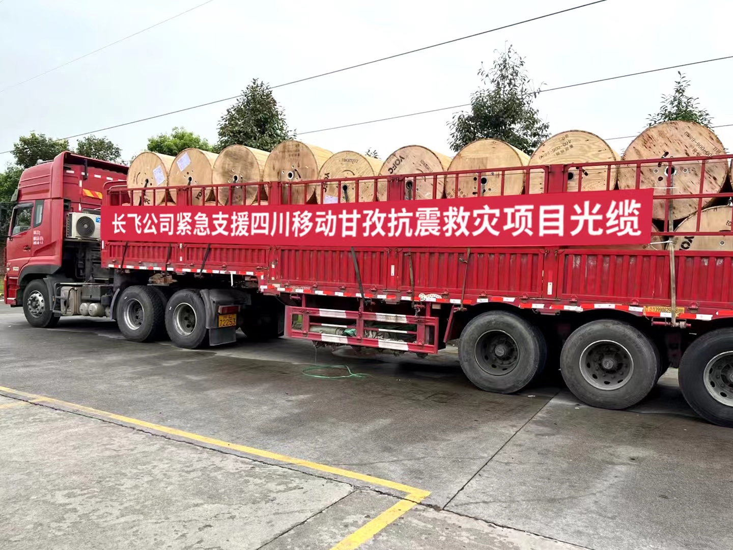 紧急备货,驰往灾区 四川移动 地震发生第一时间,长飞与客户联系,并于9月7日接到救灾光缆紧急需求任务,快速调配资源响应,在接到需求12小时内将所需物资送达灾区;